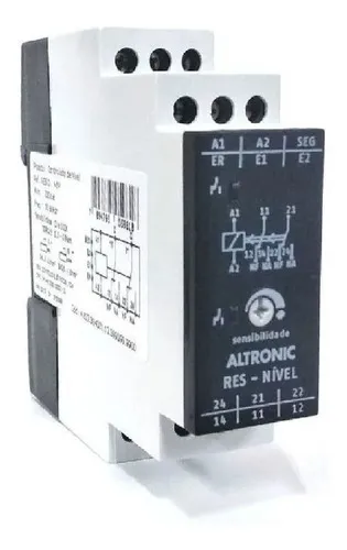 Possui funções de controle de nível mínimo e máximo, permitindo o acionamento seguro de bombas, válvulas e alarmes, prevenindo transbordamentos ou funcionamento a seco. Seu funcionamento é baseado na condutividade elétrica do líquido, garantindo confiabilidade e precisão no controle.